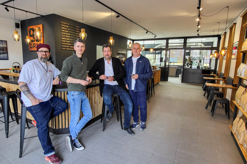 Endlich war es soweit und Bürgermeister Matthias Bernhardt durfte zur Eröffnung der Kaffeerösterei 93 Grad gratulieren.
